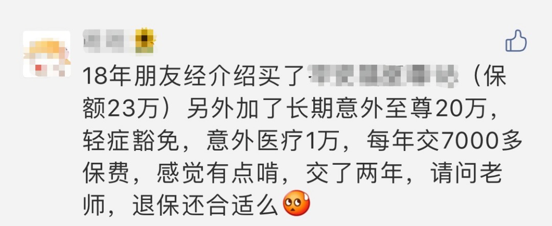 昨天收到一條粉絲的留言,說(shuō)自己不幸買錯(cuò)保險(xiǎn),很猶豫要不要退保。