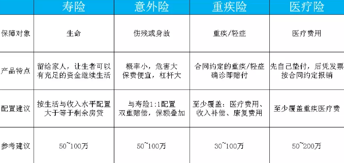 以前我們講過,男性(大部分)作為家庭的經(jīng)濟(jì)支柱,是一個(gè)家庭中最需要配備保險(xiǎn)的人,畢竟你的健康才是對(duì)其他家人最好的保險(xiǎn)。如果是中產(chǎn)男性又怎么買保險(xiǎn)比較好呢?保魚君的建議是,一定要把保險(xiǎn)買全,我們先用圖片來概括一下人生中需要配置的四種保險(xiǎn)的基本情況。