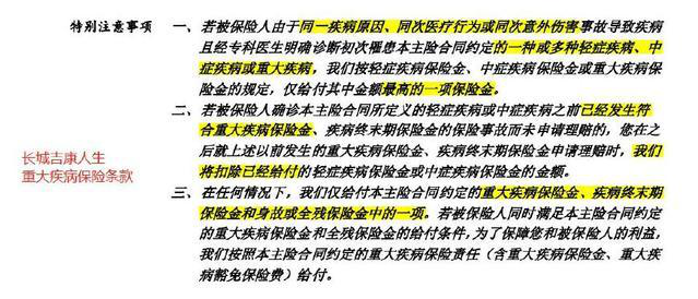 同樣的原因,根據(jù)輕度,中度和嚴(yán)重疾病的最高額度支付。不累計(jì)。